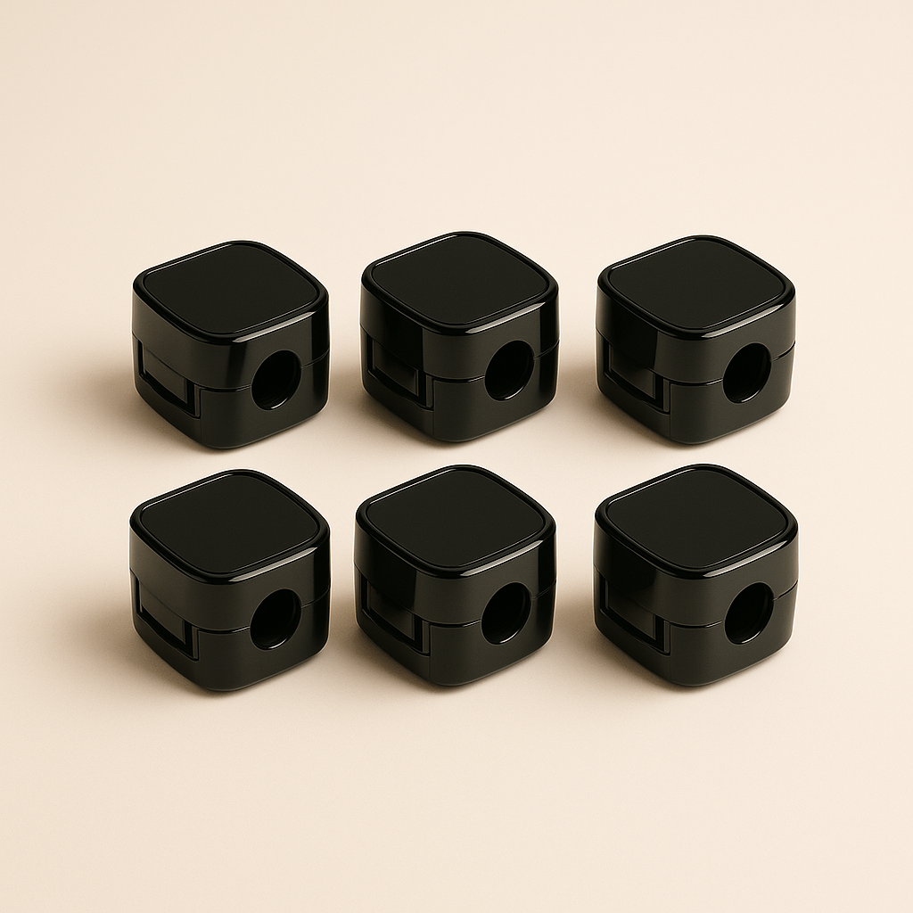 Magnetic cable organizer clips. Holds USB-C, Lightning, and Micro-USB cables. Available in 1PC to 10PC sets. Black or White.